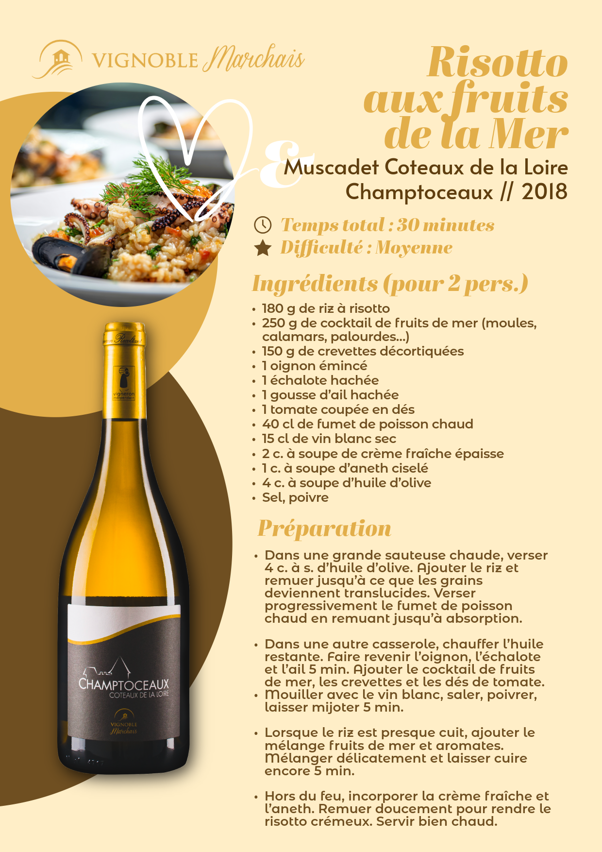 Crémeux, gourmand et délicatement iodé, le risotto de la mer s’accorde parfaitement avec le Champtoceaux.