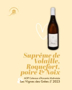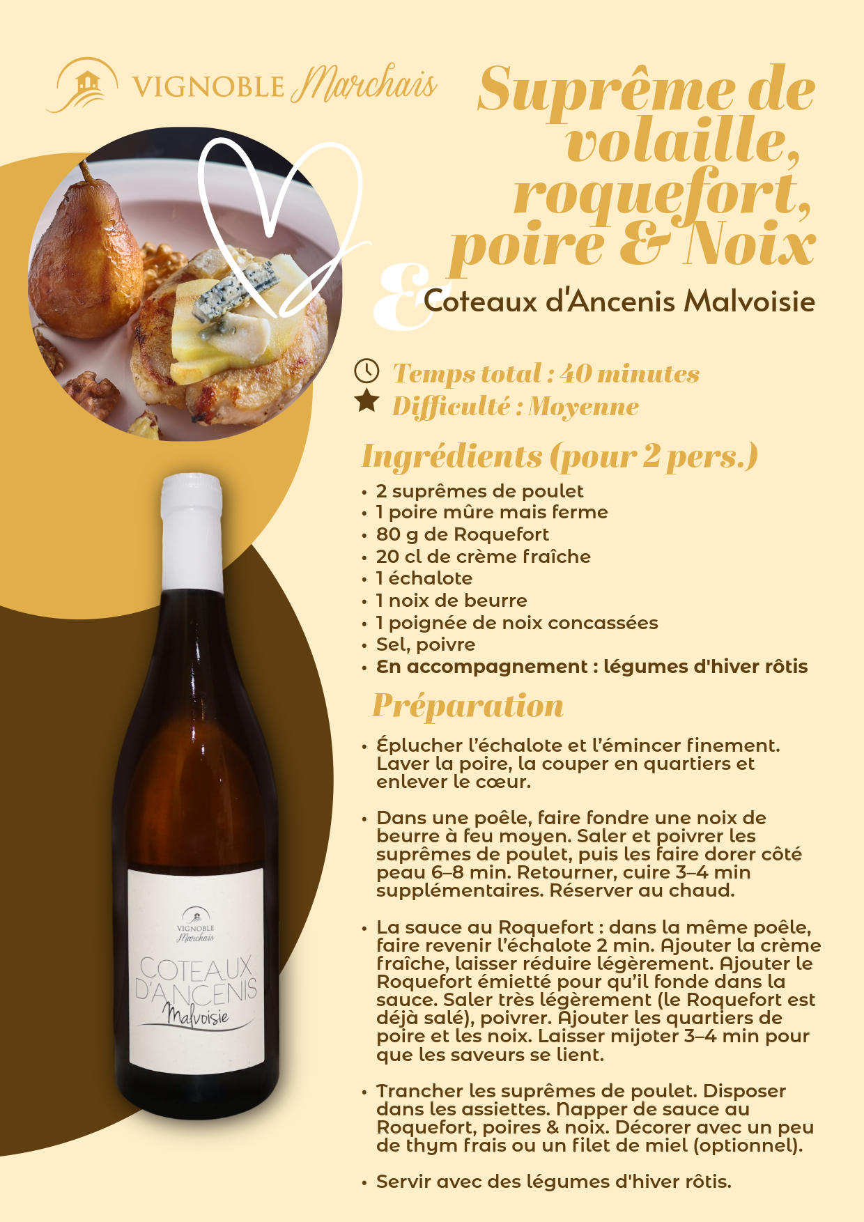 Accord suggèré : Suprême de volaille, sauce roquefort